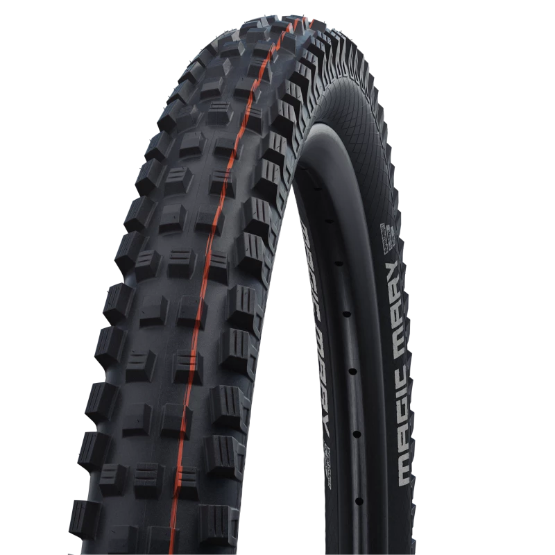 Super Gravity: ADDIX Soft (orange) oder ADDIX Ultra Soft (purple). Extrem seitenstabil, durchschlagsicher (mit Apex) und sehr dynamisch im Fahrverhalten.