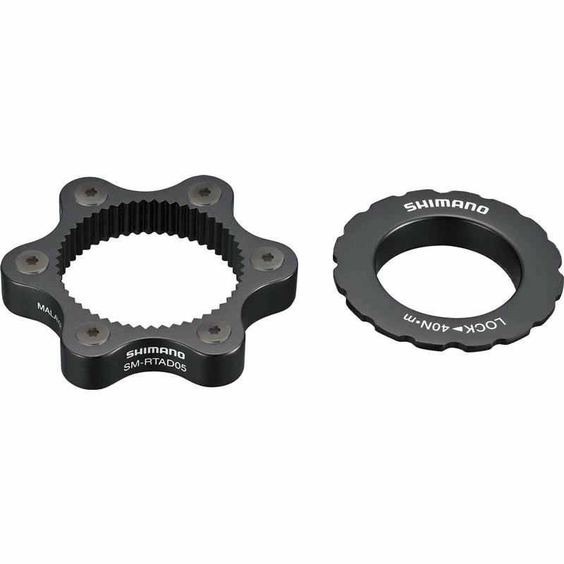 Verschiedene Montagestandards im Bereich der Bremsscheiben können mitunter ärgerlich sein, wenn die gerade vorhandene Scheibe sich nicht ohne weiteres an ein bestimmtes Laufrad montieren lässt. Der Shimano Center Lock Adapter schafft Abhilfe für den Fall, dass eine 6-Loch Scheibe an einer Nabe mit Center Lock Aufnahme montiert werden soll. 6 Bolzen halten die Scheibe sicher in Position, während der geriffelte Verschlussring die gesamte Einheit auf der Nabe fixiert.