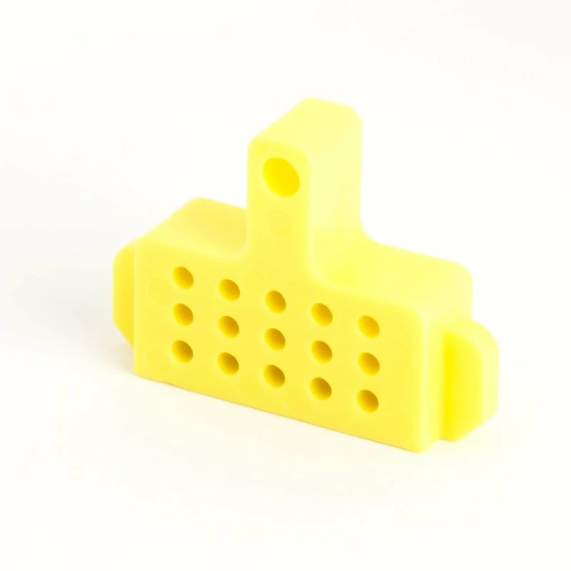 Distanz-Stück für die Entlüftung einer Shimano 2-Kolben-Scheibenbremse. Die Bremsbeläge werden hierfür aus dem Bremssattel ausgebaut, die Kolben mit einem geeigneten Gegenstand zurück in den Sattel gedrückt und der Bleedblock eingesetzt. Erst wenn die Kolben mit dem Bleed-Spacer im Endanschlag gehalten werden ist ein fehlerfreies entlüften möglich.
