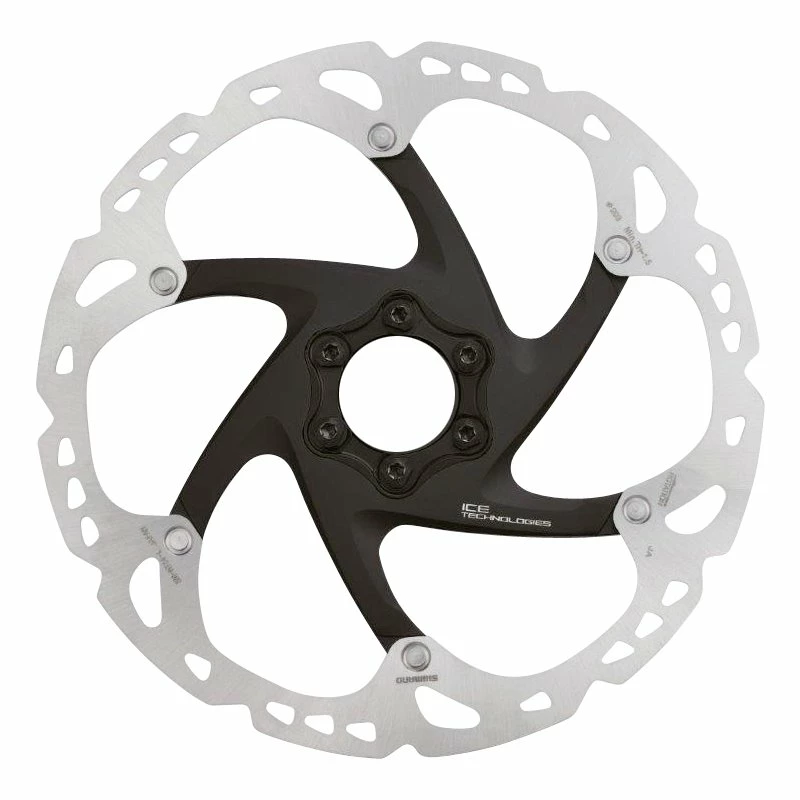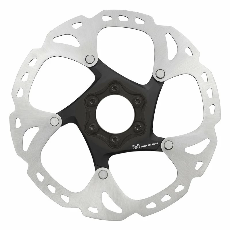 Die Shimano SM-BR86 bewegt sich technisch auf einem sehr hohem Niveau, denn bei dieser Bremsscheibe kommt eine ganze Reihe innovativer Features zum Einsatz, die in hohem Maße zu ihrer enormen Vielseitigkeit und hohen Leistungsfähigkeit beitragen. Die zweiteilige Bauform (Floating Disc) mit einem leichten Aluminiumspider und einem Edelstahlreibring mit leichtem Aluminiumkern verhindert ein Verziehen der Scheibe bei hohen Temperaturen wirkungsvoll. Hierdurch können Vibrationen effektiv eliminiert werden, während der extrem wärmeleitfähige Aluminiumkern (IceTec) des Reibrings für eine schnelle und wirkungsvolle Ableitung der beim Bremsen entstehenden Hitze sorgt. Durch den zweiteiligen Aufbau mit vernietetem Reibring wird außerdem verhindert, dass sich die Wärme in vollem Umfang auf den Spider überträgt. Durch das effektive Temperaturmanagement verlängert sich bei einer gleichzeitig verbesserten Standfestigkeit der Bremse darüber hinaus auch die Lebensdauer der Beläge.