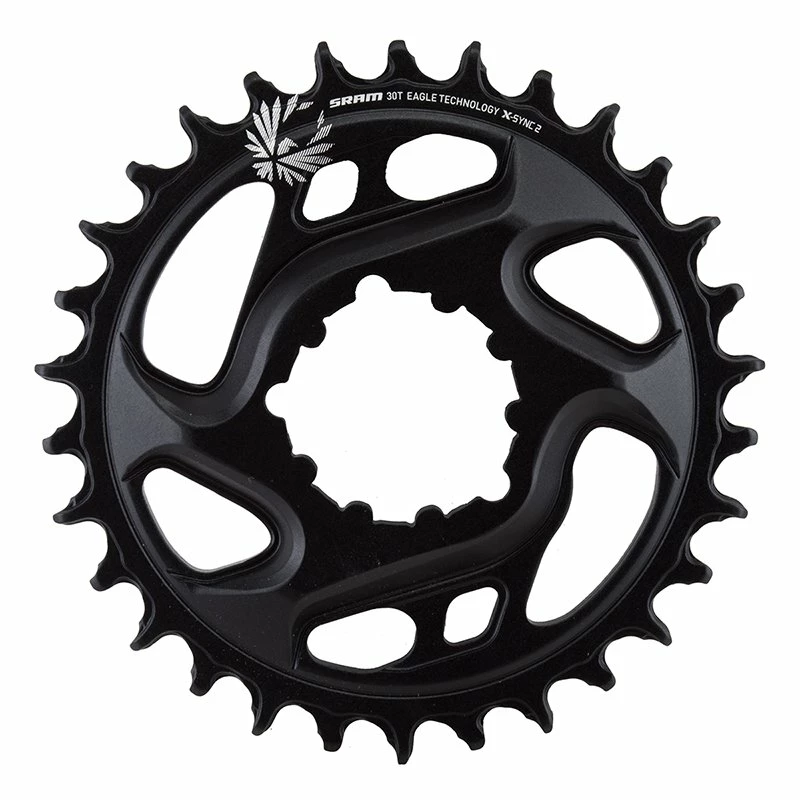 Mit den im Kaltschmiedeverfahren (CF = cold forged) aus Aluminium hergestellten X-Sync 2 Kettenblättern bietet SRAM eine nicht nur preislich interessante Alternative zu den gefrästen Varianten an. Durch das effizientere Produktionsverfahren konnten die Herstellungskosten deutlich gesenkt werden, ohne dass Einbußen bei der Funktionalität oder der Haltbarkeit hinzunehmen wären. Auch die im Kaltschmiedeverfahren hergestellten Kettenblätter verfügen über die eigens für die 12-fach Schaltgruppen von SRAM weiterentwickelten X-Sync 2 Zahnprofile, die für einen noch leiseren Lauf der Kette, einen besseren Abtransport von Schmutz, sowie aufgrund ihrer speziellen Formgebung für einen geringeren Verschleiß sorgen. Die Narrow-Wide-Auslegung der Zähne führt die Kette unter allen auftretenden Bedingungen jederzeit sicher und beugt einem Abspringen oder Verklemmen wirkungsvoll vor. Durch die Möglichkeit der direkten Montage des Kettenblatts an der Kurbel (Direct Mount) wird kein zusätzlicher Spider benötigt.