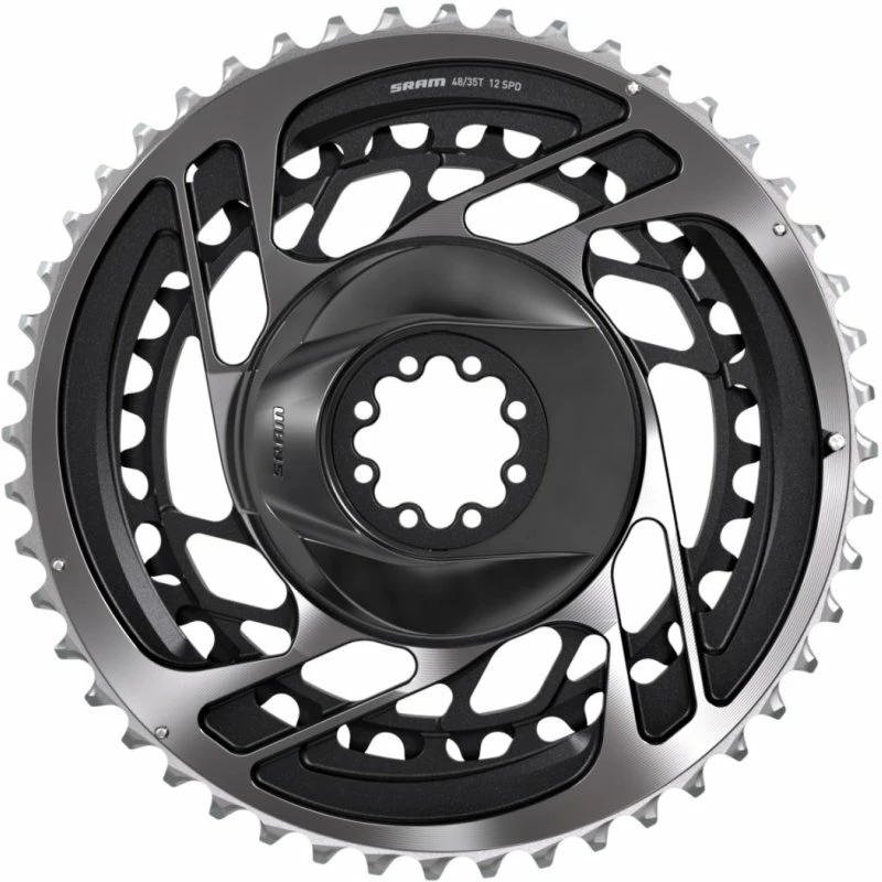 Die aus hochwertigem Aluminium CNC-gefräste Kettenblattkombination verfügt über die eigens von SRAM für 2-fach Antriebe entwickelten X-Range Gang Abstufung die kleine Gangsprünge und große Entfaltungsbandbreite vereint. Dank der einteiligen Konstruktion ist diese Kombi sowohl leichter, wie auch steifer als 2 separate Kettenblätter mit 107 mm Spider. Auch das Oberflächenfinish wurde haltbarer und das Zahnprofil auf die Flattop Kette optimiert.