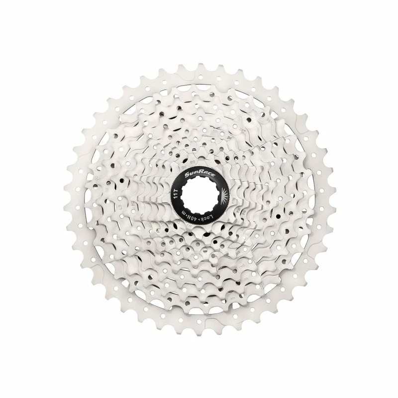 Die CSMS3 Kassette von SunRace ist nicht zuletzt aufgrund ihres ihrer sehr großen Bandbreite von 11-40, bzw. 11-42 Zähnen für alle Fahrer von Shimano und SRAM 10-fach Antrieben eine interessante und hochwertige Alternative für den Fall, dass ein Tausch der Kassette ansteht, oder einfach ein breiteres Gangspektrum gewünscht ist. Das Rückgrat der CSMS1 bilden zwei robuste Spider aus Aluminium, auf die jeweils drei Zahnräder aufgenietet sind, während die vier kleinsten Ritzel lediglich aufgesteckt und mit Hilfe des Verschlussrings aus Aluminium sicher in Position gehalten werden. Durch die Wide Ratio Auslegung wird sowohl ein kleiner Berggang, wie auch ein entsprechend langer Gang für flotte Flachpassagen zur Verfügung gestellt, wodurch sich der Einsatzbereich dieser Kassette deutlich erweitert. Die Fluid Drive Plus™ Technologie sorgt für jederzeit zuverlässige und geschmeidige Gangwechsel auch unter Last, während die schwarz, bzw. silber veredelten Oberflächen der Kassette ein wertiges Aussehen verleihen und die Zahnkränze wirkungsvoll vor Korrosion schützen. Die SunRace CSMS1 kann problemlos mit den 10-fach Antrieben von Shimano kombiniert werden.