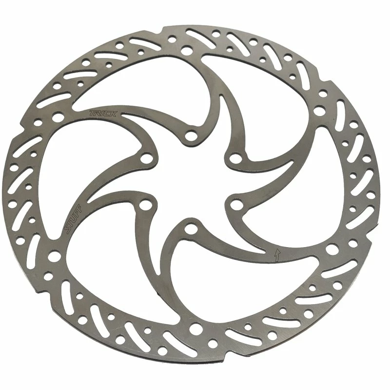 Die “Heavy Duty”-Bremsscheibe von Trickstuff. Trickstuff-Bremsscheiben sind aus besonders hochwertigem Stahl gefertigt, der eine bis zu 25% höhere Zugfestigkeit aufweist. Dazu sind sie dicker als die meisten anderen Scheibe. Die Vorteile sind: